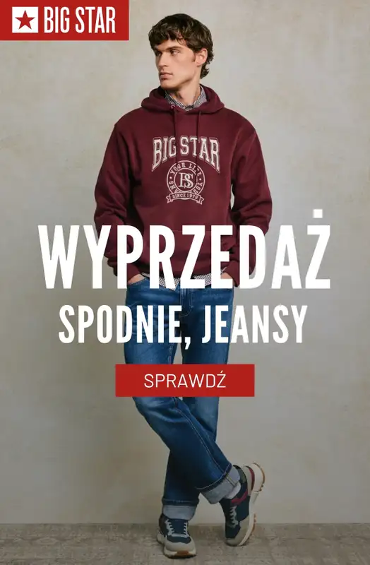 Obejrzyj najnowszą gazetkę sieci BIG STAR, Jeansy i spodnie męskie z wyprzedaży, obowiązującą od 16 kwietnia . Ta aktualna gazetka BIG STAR zawiera wiele wspaniałych promocji na różnego rodzaju produkty.