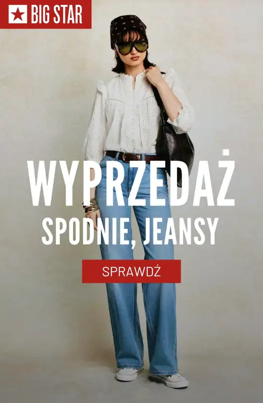 Obejrzyj najnowszą gazetkę sieci BIG STAR, Wyprzedaż: jeansy i spodnie damskie, obowiązującą od 29 kwietnia . Ta aktualna gazetka BIG STAR zawiera wiele wspaniałych promocji na różnego rodzaju produkty.