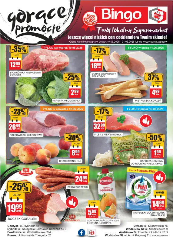 Obejrzyj najnowszą gazetkę sieci Bingo, Gazetka, obowiązującą od 10 czerwca do 21 czerwca. Ta aktualna gazetka Bingo zawiera wiele wspaniałych promocji na różnego rodzaju produkty.