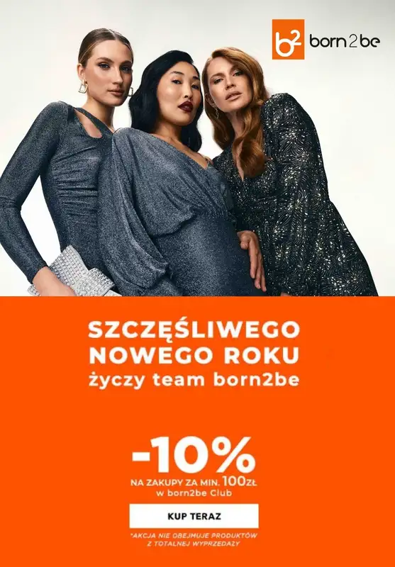 Obejrzyj najnowsz膮 gazetk臋 sieci Born2be, -10% na zakupy za min.100z艂, obowi膮zuj膮c膮 od 30 grudnia do 2 stycznia. Ta aktualna gazetka Born2be zawiera wiele wspania艂ych promocji na r贸偶nego rodzaju produkty.