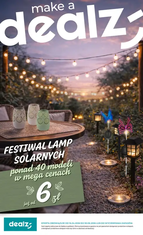 Obejrzyj najnowszą gazetkę sieci Dealz, Festiwal lamp solarnych, obowiązującą od 16 kwietnia do 30 czerwca. Ta aktualna gazetka Dealz zawiera wiele wspaniałych promocji na różnego rodzaju produkty.