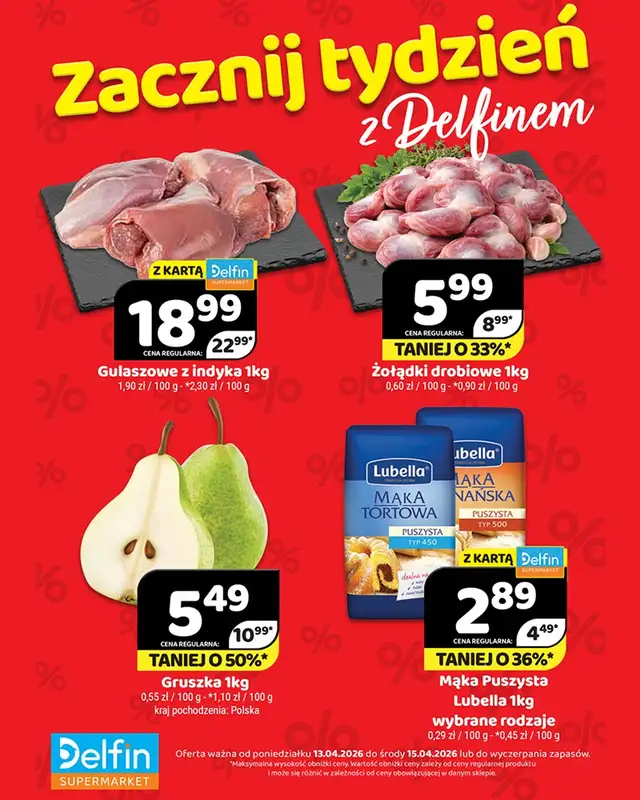 Obejrzyj najnowsz膮 gazetk臋 sieci Delfin, Zacznij tydzie艅 z Delfinem, obowi膮zuj膮c膮 od 13 kwietnia do 15 kwietnia. Ta aktualna gazetka Delfin zawiera wiele wspania艂ych promocji na r贸偶nego rodzaju produkty.