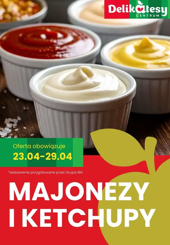 Obejrzyj najnowszą gazetkę sieci Delikatesy Centrum, Majonezy i ketchupy - sprawdź oferty!, obowiązującą od 23 kwietnia do 29 kwietnia. Ta aktualna gazetka Delikatesy Centrum zawiera wiele wspaniałych promocji na różnego rodzaju produkty.