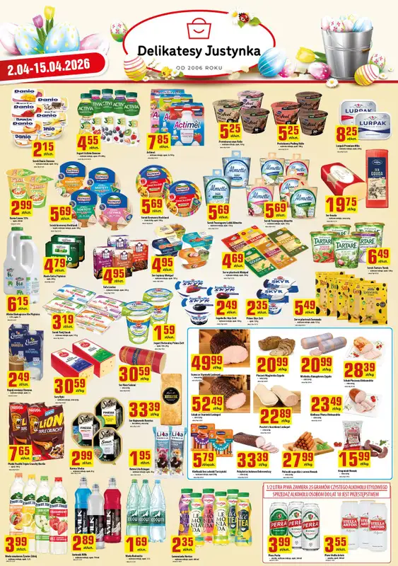 Obejrzyj najnowszą gazetkę sieci Delikatesy Justynka, Gazetka, obowiązującą od 2 kwietnia do 15 kwietnia. Ta aktualna gazetka Delikatesy Justynka zawiera wiele wspaniałych promocji na różnego rodzaju produkty.