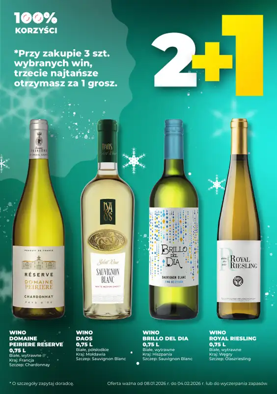 Obejrzyj najnowszą gazetkę sieci Duży Ben, Wina 2+1, obowiązującą od 15 stycznia do 4 lutego. Ta aktualna gazetka Duży Ben zawiera wiele wspaniałych promocji na różnego rodzaju produkty.