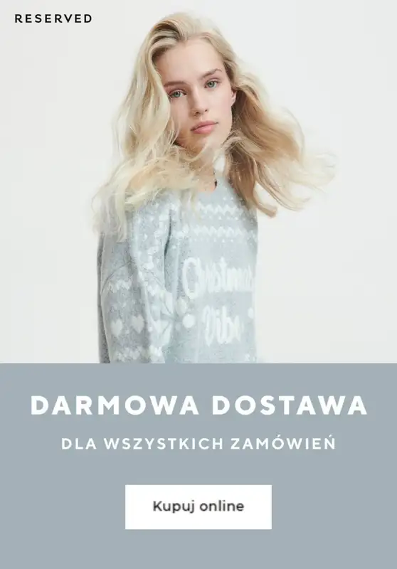 Obejrzyj najnowszą gazetkę sieci Dzień darmowej dostawy!, Reserved | DARMOWA DOSTAWA dla wszystkich zamówień, obowiązującą od 14 grudnia do 19 grudnia. Ta aktualna gazetka Dzień darmowej dostawy! zawiera wiele wspaniałych promocji na różnego rodzaju produkty.