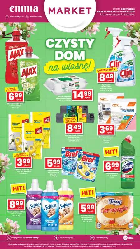 Obejrzyj najnowsz膮 gazetk臋 sieci emma MARKET, Plakat promocyjny, obowi膮zuj膮c膮 od 26 marca do 4 kwietnia. Ta aktualna gazetka emma MARKET zawiera wiele wspania艂ych promocji na r贸偶nego rodzaju produkty.