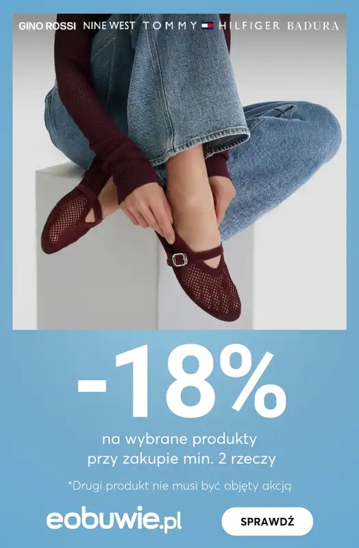 Obejrzyj najnowszą gazetkę sieci eobuwie.pl, -18% na wybrane produkty przy zakupie 2 rzeczy!, obowiązującą od 5 marca do 9 marca. Ta aktualna gazetka eobuwie.pl zawiera wiele wspaniałych promocji na różnego rodzaju produkty.