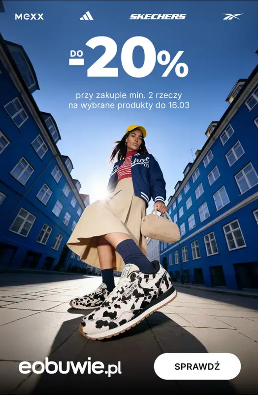 Obejrzyj najnowszą gazetkę sieci eobuwie.pl, Do -20% przy dwóch rzeczach, obowiązującą od 12 marca do 16 marca. Ta aktualna gazetka eobuwie.pl zawiera wiele wspaniałych promocji na różnego rodzaju produkty.