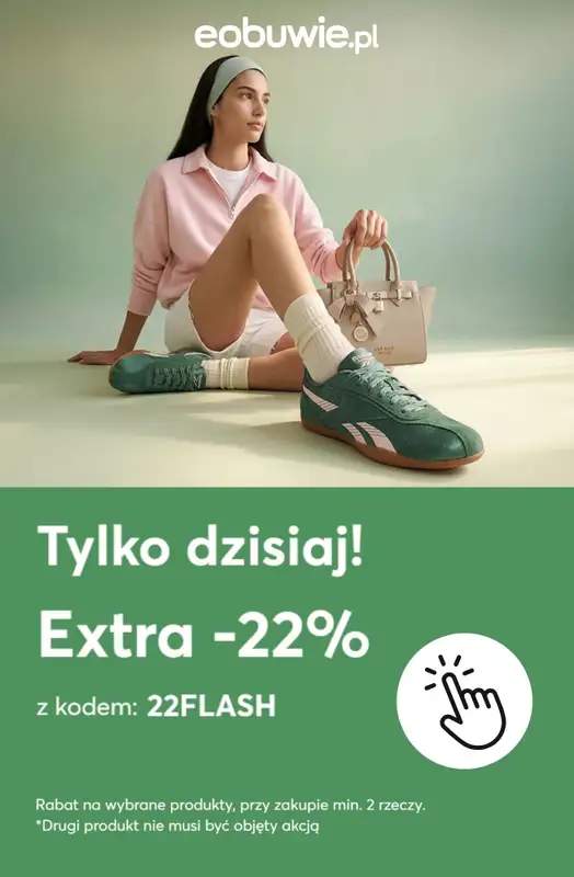Obejrzyj najnowszą gazetkę sieci eobuwie.pl, Tylko dzisiaj! EXTRA -22% na wybrane produkty przy zakupie min. 2, obowiązującą od 8 kwietnia do 8 kwietnia. Ta aktualna gazetka eobuwie.pl zawiera wiele wspaniałych promocji na różnego rodzaju produkty.