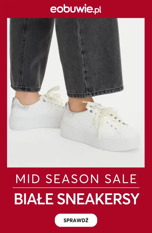 Obejrzyj najnowszą gazetkę sieci eobuwie.pl, Mid Season SALE - białe damskie sneakersy, obowiązującą od 9 kwietnia . Ta aktualna gazetka eobuwie.pl zawiera wiele wspaniałych promocji na różnego rodzaju produkty.