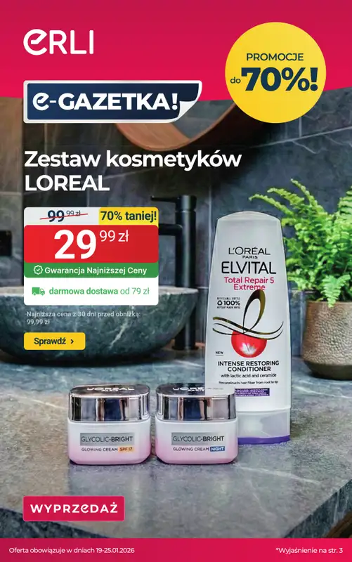 Obejrzyj najnowszą gazetkę sieci ERLI, Polecane perełki - dla Ciebie i rodziny!, obowiązującą od 21 stycznia do 25 stycznia. Ta aktualna gazetka ERLI zawiera wiele wspaniałych promocji na różnego rodzaju produkty.