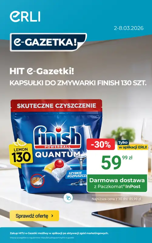 Obejrzyj najnowszą gazetkę sieci ERLI, Zapasy do domu w hitowych cenach – oszczędzaj z ERLI!, obowiązującą od 2 marca do 8 marca. Ta aktualna gazetka ERLI zawiera wiele wspaniałych promocji na różnego rodzaju produkty.