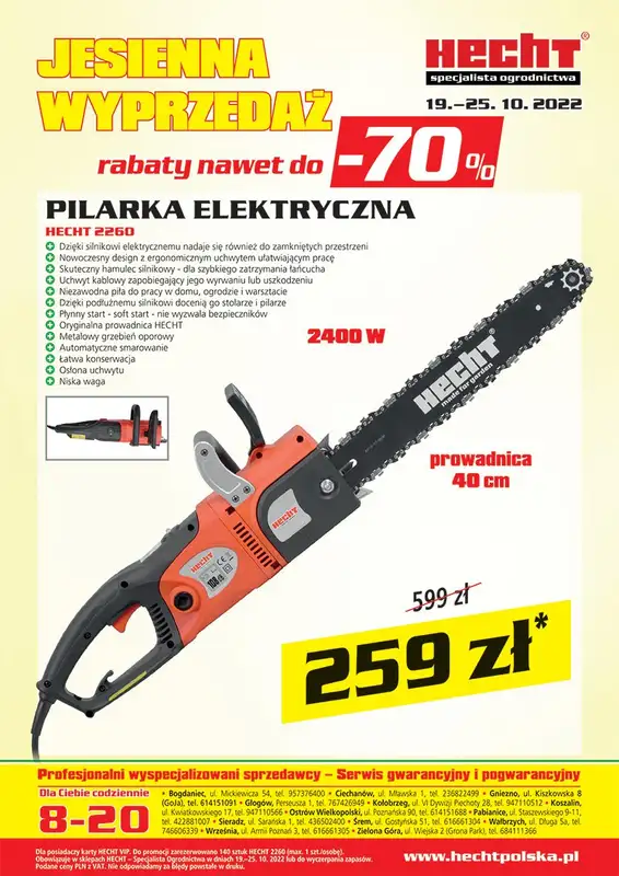 Obejrzyj najnowszą gazetkę sieci Hecht, Jesienna wyprzedaż. Rabaty nawet do -70%, obowiązującą od 19 października do 25 października. Ta aktualna gazetka Hecht zawiera wiele wspaniałych promocji na różnego rodzaju produkty.