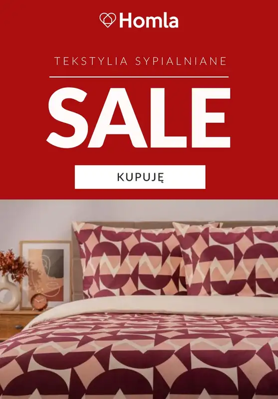 Obejrzyj najnowszą gazetkę sieci Homla, SALE: tekstylia sypialniane, obowiązującą od 16 grudnia do 22 grudnia. Ta aktualna gazetka Homla zawiera wiele wspaniałych promocji na różnego rodzaju produkty.