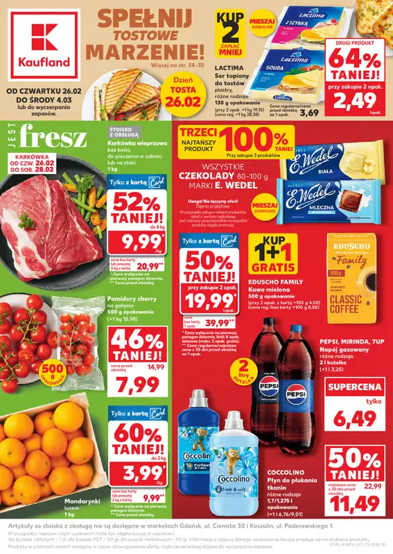 Obejrzyj najnowszą gazetkę sieci Kaufland, Oferta Kaufland, obowiązującą do 4 marca. Ta aktualna gazetka Kaufland zawiera wiele wspaniałych promocji na różnego rodzaju produkty.