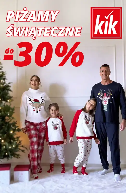Obejrzyj najnowszą gazetkę sieci KiK, Do -30% na piżamy świąteczne dla całej rodziny, obowiązującą od 17 grudnia do 21 grudnia. Ta aktualna gazetka KiK zawiera wiele wspaniałych promocji na różnego rodzaju produkty.