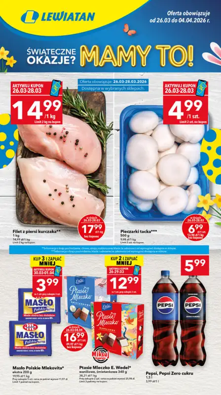 Obejrzyj najnowsz膮 gazetk臋 sieci LEWIATAN, Gazetka 艢wi膮teczne okazje Mamy to! woj. wielkopolskie, obowi膮zuj膮c膮 od 26 marca do 4 kwietnia. Ta aktualna gazetka LEWIATAN zawiera wiele wspania艂ych promocji na r贸偶nego rodzaju produkty.