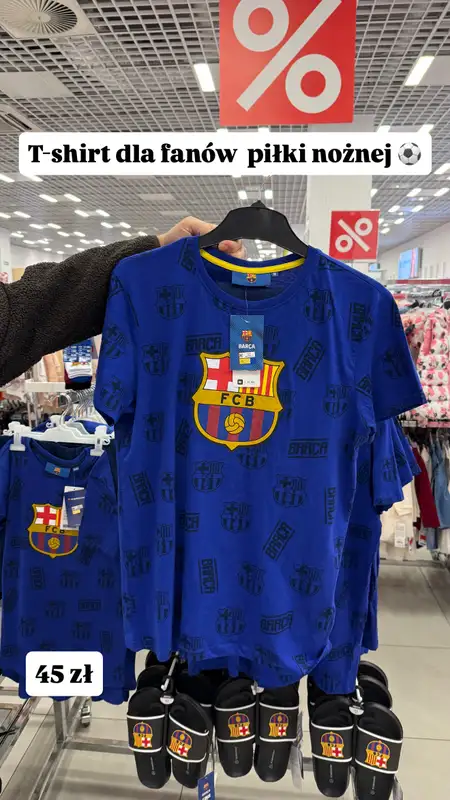 Znajdziesz w niej m.in. oferty na: T-shirt dla fanów piłki nożnej za 45,00zł, Piżama damska 2 części za 40,00zł, Projektor led ozdobi ściany i sufit pokoju dziecięcego po zmroku za 35,00zł, Kubek ze spodkiem za 17,00zł, Lampa designerska za 80,00zł, Zestaw noży wiosenny nastrój w kuchni za 15,00zł, Ozdobna kula-lampka za 25,00zł, Skarpety FC Barcelona za 15,00zł.