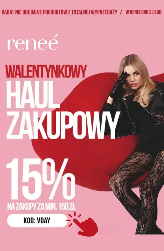 Obejrzyj najnowszą gazetkę sieci Renee, Walentynkowy haul zakupowy -15% w klubie, obowiązującą od 10 lutego do 16 lutego. Ta aktualna gazetka Renee zawiera wiele wspaniałych promocji na różnego rodzaju produkty.