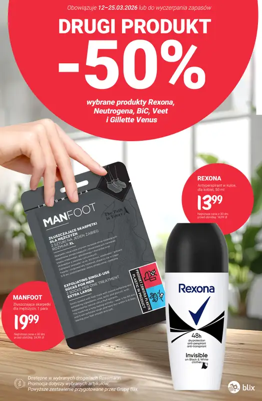 Rossmann - gazetka promocyjna -50% na drugi wybrany produkt marek: Rexona, Neutrogena, BiC, Veet... od poniedziałku 16.03 do środy 25.03 1