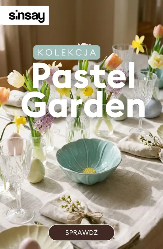 Obejrzyj najnowsz膮 gazetk臋 sieci Sinsay, Kolekcja Pastel Garden, obowi膮zuj膮c膮 od 21 marca . Ta aktualna gazetka Sinsay zawiera wiele wspania艂ych promocji na r贸偶nego rodzaju produkty.