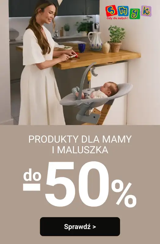 Obejrzyj najnowszą gazetkę sieci Smyk, Do -50% produkty dla mamy i maluszka, obowiązującą od 19 grudnia . Ta aktualna gazetka Smyk zawiera wiele wspaniałych promocji na różnego rodzaju produkty.