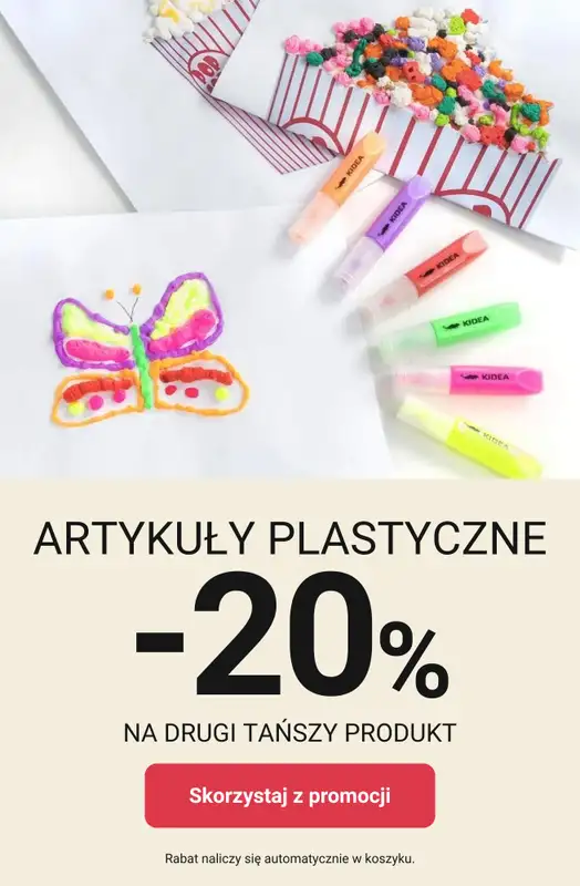 Obejrzyj najnowszą gazetkę sieci Smyk, Artykuły plastyczne -20% na DRUGI PRODUKT, obowiązującą od 16 lutego do 23 lutego. Ta aktualna gazetka Smyk zawiera wiele wspaniałych promocji na różnego rodzaju produkty.