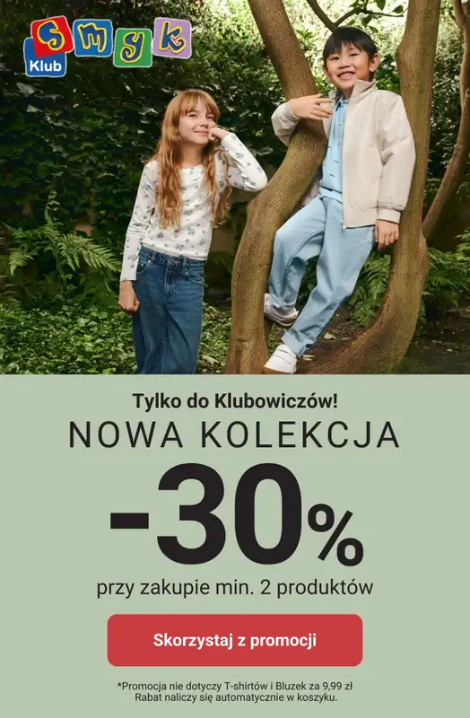 Obejrzyj najnowszą gazetkę sieci Smyk, -30% na NOWĄ KOLEKCJĘ przy min 2 szt. - dla Klubowiczów!, obowiązującą od 26 lutego do 2 marca. Ta aktualna gazetka Smyk zawiera wiele wspaniałych promocji na różnego rodzaju produkty.