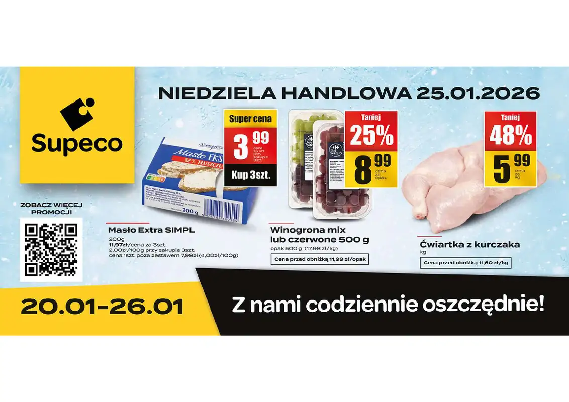 Obejrzyj najnowszą gazetkę sieci Supeco, BLB, obowiązującą od 20 stycznia do 26 stycznia. Ta aktualna gazetka Supeco zawiera wiele wspaniałych promocji na różnego rodzaju produkty.
