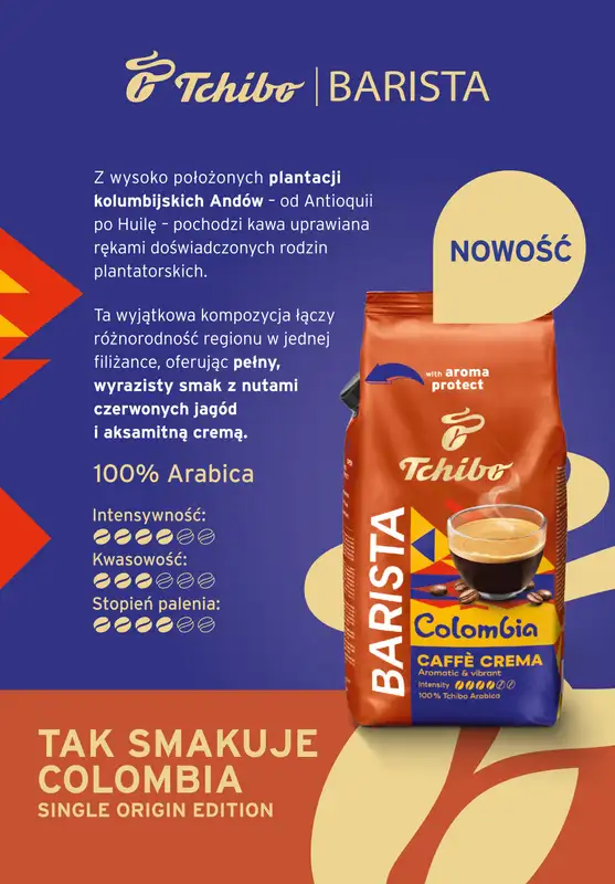 Obejrzyj najnowszą gazetkę sieci Tchibo, Tak smakuje Colombia – nowa kawa Barista, obowiązującą od 10 marca do 10 czerwca. Ta aktualna gazetka Tchibo zawiera wiele wspaniałych promocji na różnego rodzaju produkty.