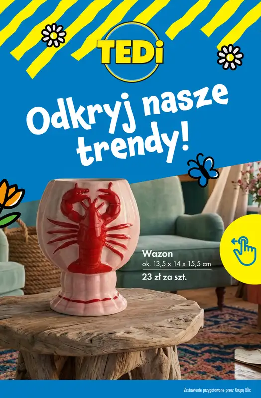 Obejrzyj najnowszą gazetkę sieci Tedi, Odkryj nasze trendy!, obowiązującą od 8 kwietnia do 14 kwietnia. Ta aktualna gazetka Tedi zawiera wiele wspaniałych promocji na różnego rodzaju produkty.